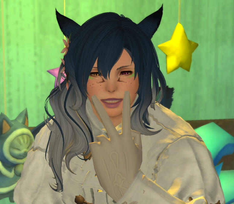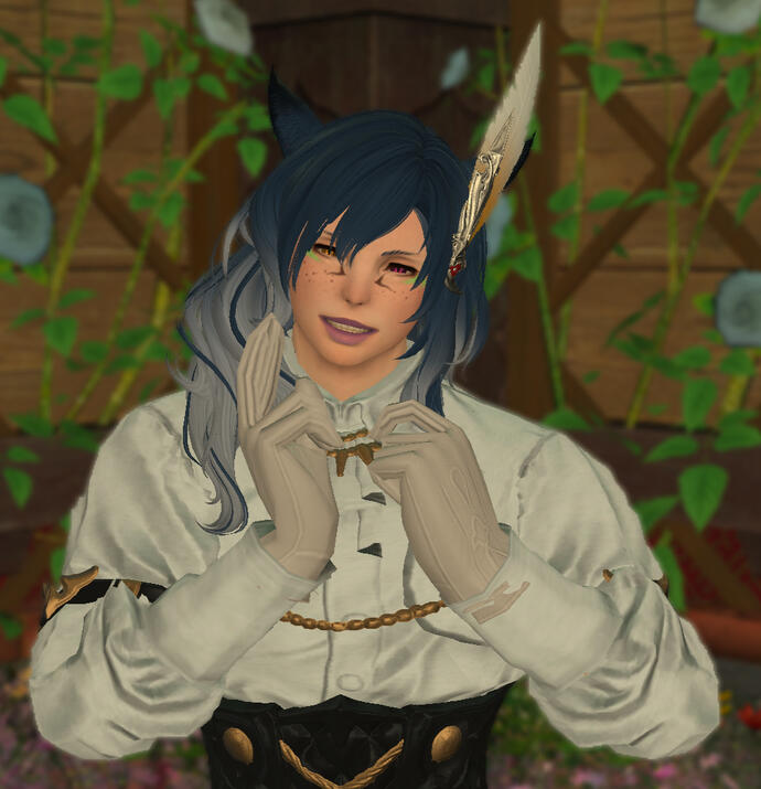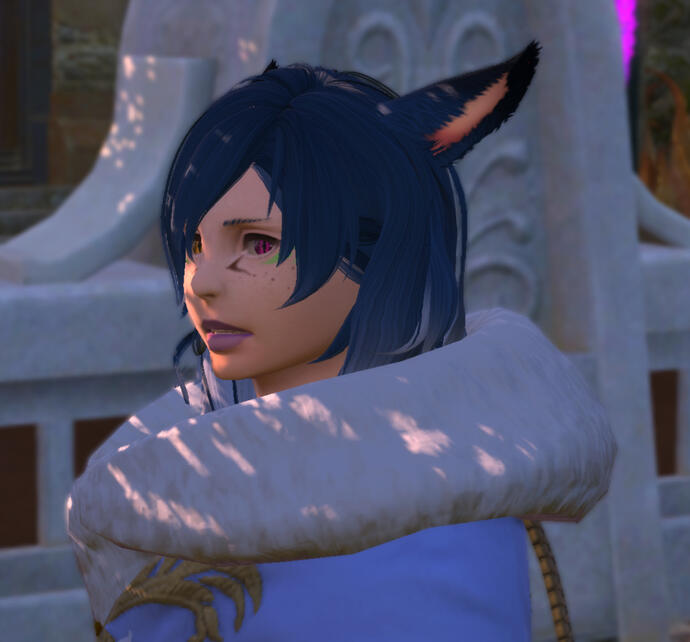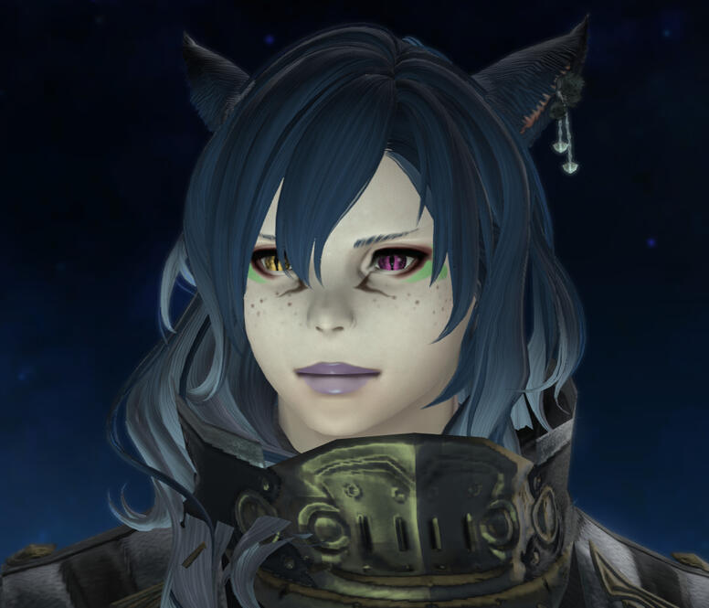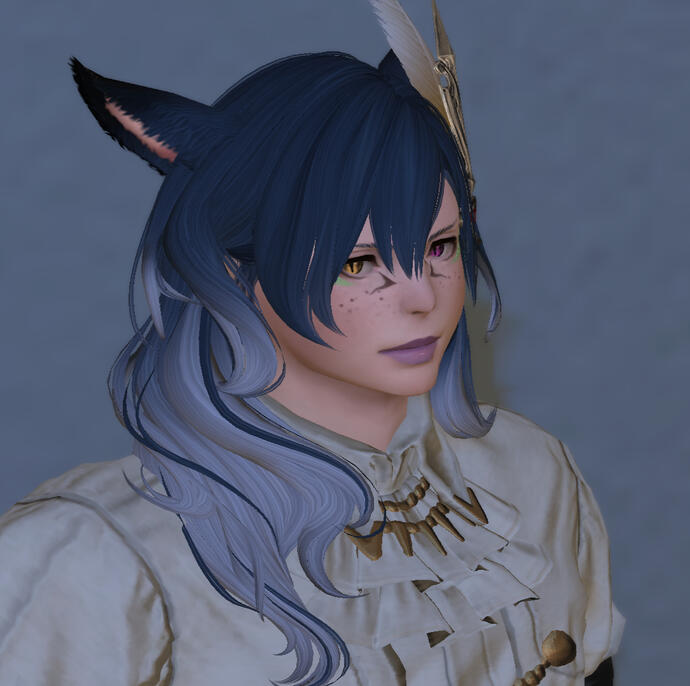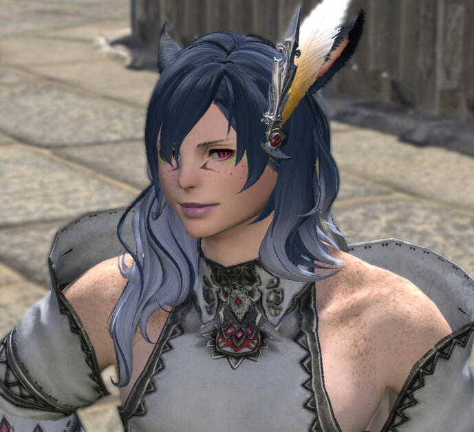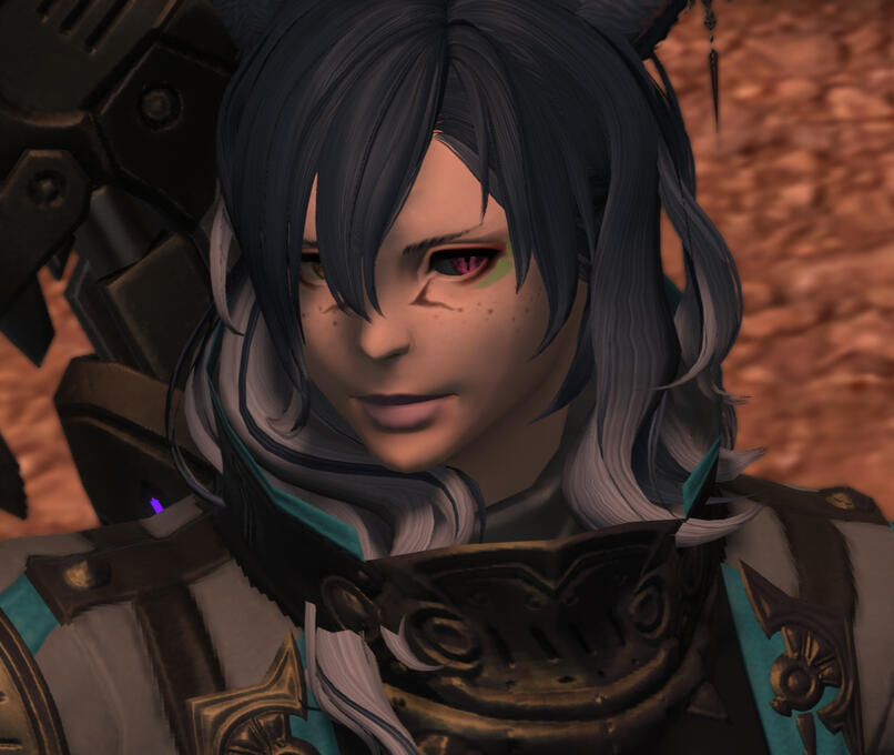 He escaped after a few years, with Atlus, a Seeker he met during containment and made good friends with, and his siblings. He lived with them on their travels back to their home, staying with them even afterwards. He now visits Ul'dah, and even though he was almost killed at 24, has made plenty of progress from when he first started. He wears purple lipstick as a tradition from his Long-passed tribe, and eventually learned how to control the powers and abilities of the Voidsent inhabiting his body. Though he later deemed that too dangerous, and instead went down the path to become a Paladin instead.